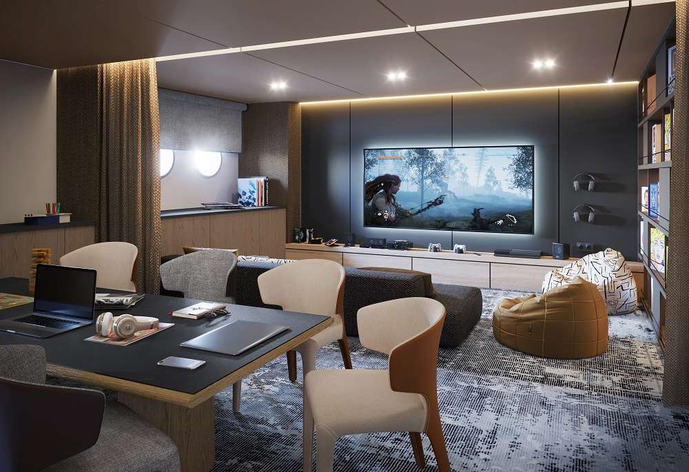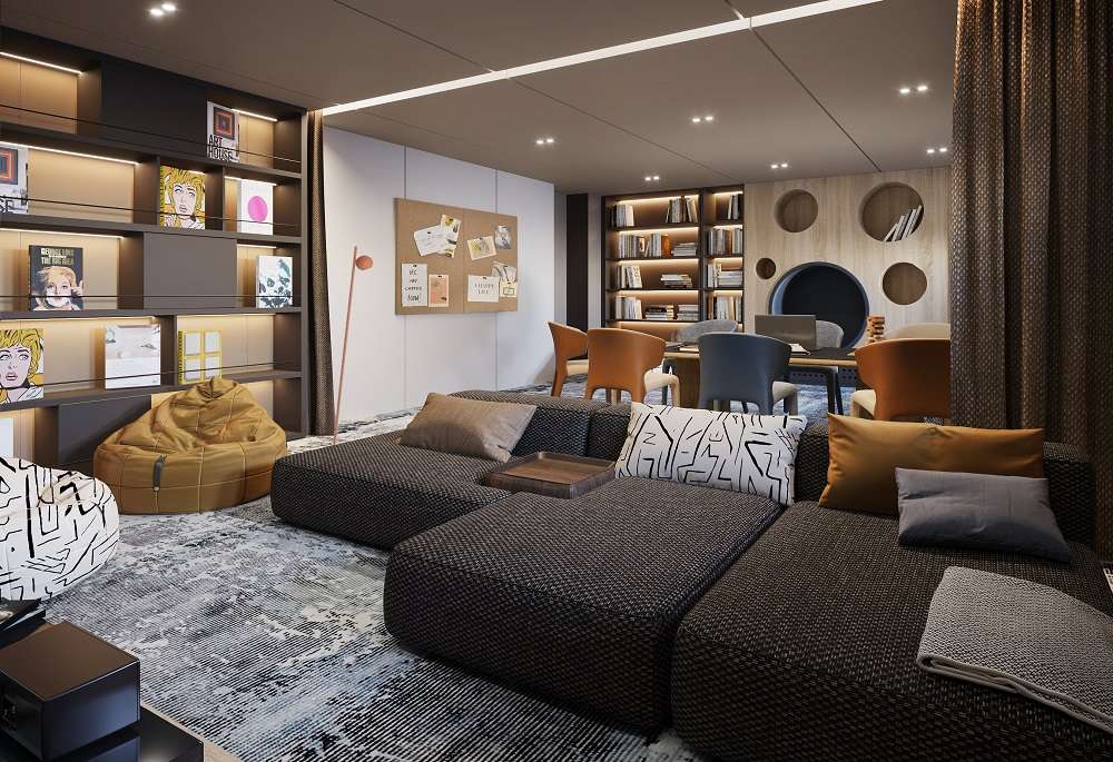 Детский клуб расположится на главной палубе в максимальном удалении от спальной зоны. В нем будут работать профессиональные аниматоры, которые предложат маленьким путешественникам самые разные творческие и обучающие занятия. Подростки и даже многие взрослые будут в восторге от Игротеки с огромным экраном для видеоигр.