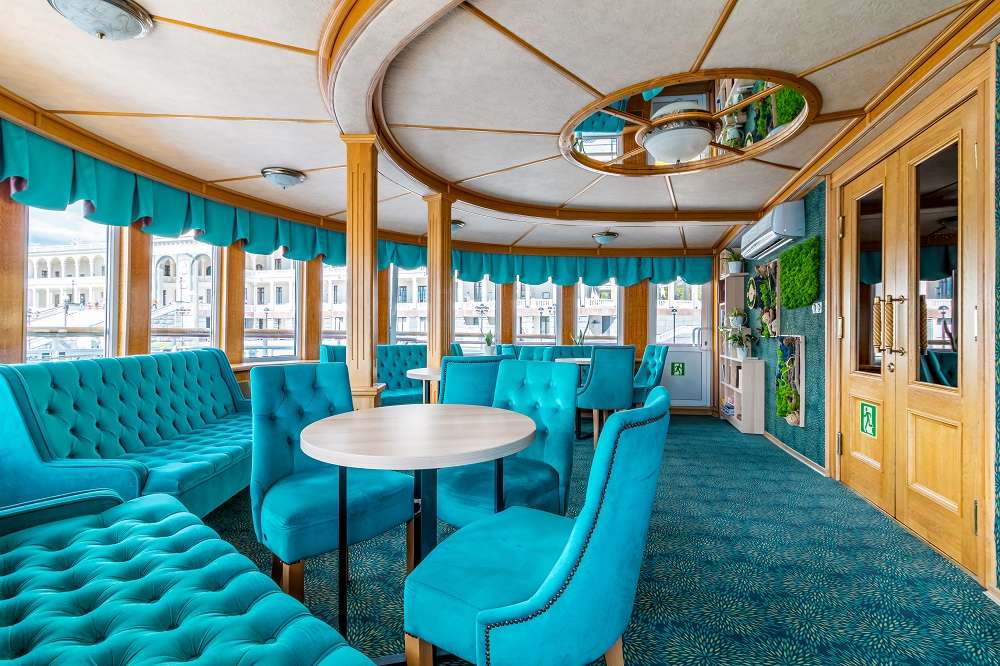 На борту теплохода вы сможете выбрать отдых и развлечения на любой вкус: насладиться речными пейзажами, сидя с книгой в «Лесной гостиной», поиграть в настольные игры, поучаствовать в мастер-классах, музыкальных вечерах, концертных программах, тематических лекциях.