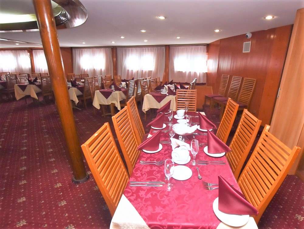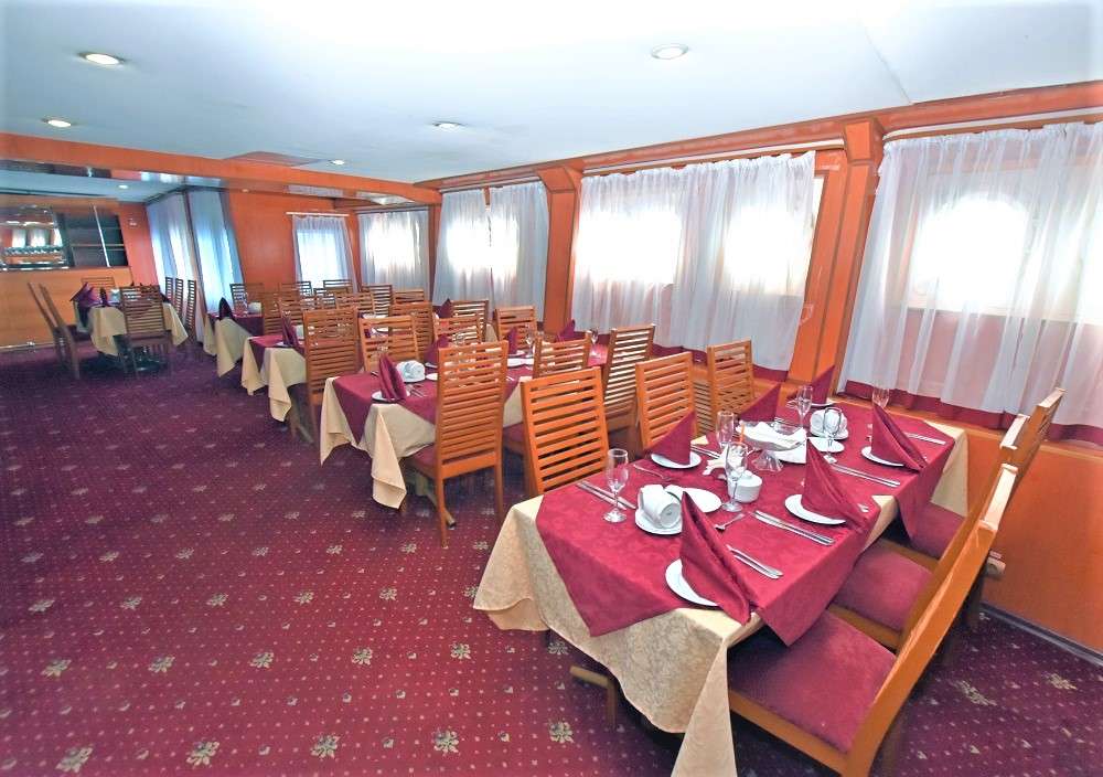 Трёхразовое питание организовано в 2-х ресторанах.  В баре предоставлен ассортимент закусок, алкогольных и безалкогольных напитков.
